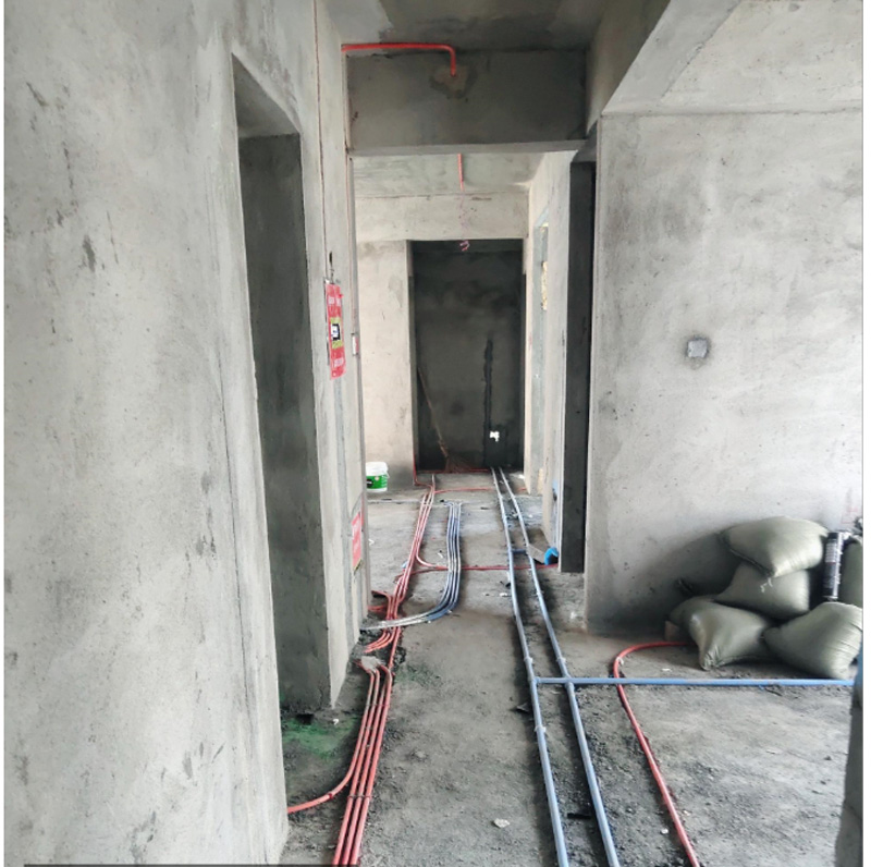 水電施工規(guī)范:1.根據(jù)設(shè)計要求,確定電路管線走向,標(biāo)高及開關(guān)插座的位置 2、電源線配線時,所用導(dǎo)線截面積應(yīng)滿足用電設(shè)備 的最大輸出功率 3、暗線敷設(shè)必須套管,當(dāng)管線長度超過15米或有2個直角彎時慶增設(shè)拉線盒,暗裝表面與墻面應(yīng)留10mm的批蕩位(粘貼性、熱脹冷縮) 4、同一回路,電線應(yīng)穿入同一根管內(nèi),但管內(nèi)總數(shù)不應(yīng)超過6根,電線總截面積(包括絕緣皮)不應(yīng)超過管內(nèi)截面積的40% 5、強(qiáng)電線與弱電線不能穿入同一根管內(nèi),不能共用一個底盒或相互經(jīng)過底盒,以防發(fā)生磁場干擾