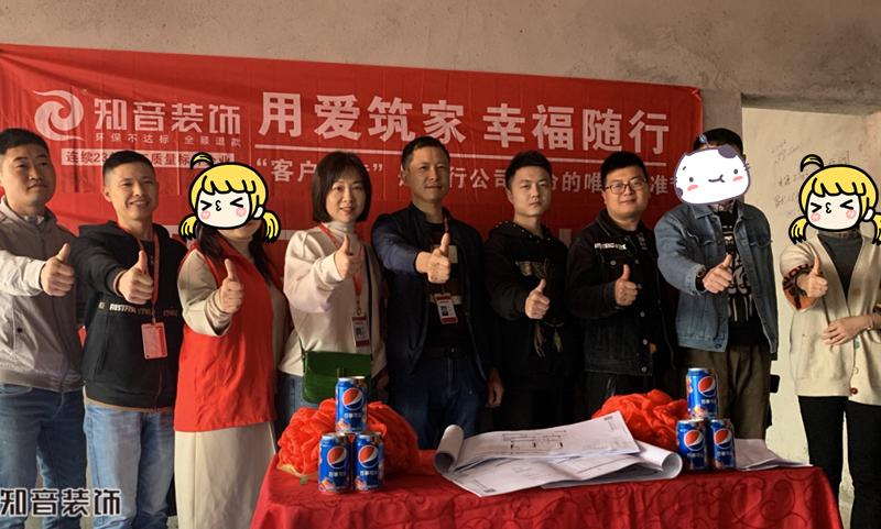 開工典禮:經(jīng)過原屋驗收,電梯公共過道保護,鏟除墻皮,黃墻綠地保護,全房放線定位,全房放樣安全防護、安全文明標(biāo)牌懸掛、窗貼、門貼、燃?xì)獗黼姳硐浔Wo、消防器材布置,以上各項工作完畢,舉行儀式,標(biāo)志正式進入施工階段。 同時以表祝賀,也表示感謝各位業(yè)主選擇我們知音,知音將會用愛筑起每一個家!