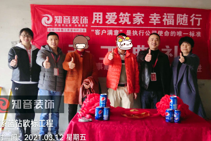 開工典禮:經(jīng)過(guò)原屋驗(yàn)收,電梯公共過(guò)道保護(hù),鏟除墻皮,黃墻綠地保護(hù),全房放線定位,全房放樣安全防護(hù)、安全文明標(biāo)牌懸掛、窗貼、門貼、燃?xì)獗黼姳硐浔Wo(hù)、消防器材布置,以上各項(xiàng)工作完畢,舉行儀式,標(biāo)志正式進(jìn)入施工階段。 同時(shí)以表祝賀,也表示感謝各位業(yè)主選擇我們知音,知音將會(huì)用愛(ài)筑起每一個(gè)家!