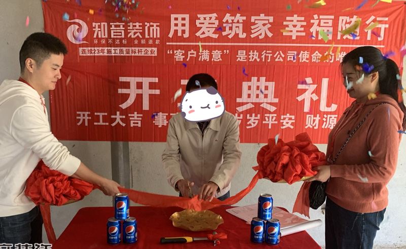 開工典禮:經(jīng)過原屋驗(yàn)收,電梯公共過道保護(hù),鏟除墻皮,黃墻綠地保護(hù),全房放線定位,全房放樣安全防護(hù)、安全文明標(biāo)牌懸掛、窗貼、門貼、燃?xì)獗黼姳硐浔Wo(hù)、消防器材布置,以上各項(xiàng)工作完畢,舉行儀式,標(biāo)志正式進(jìn)入施工階段。 同時(shí)以表祝賀,也表示感謝各位業(yè)主選擇我們知音,知音將會(huì)用愛筑起每一個(gè)家!