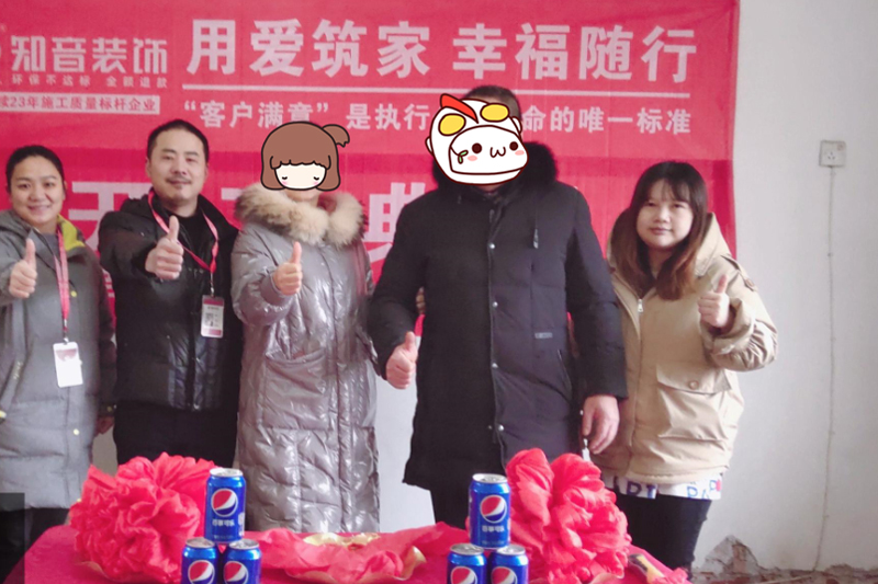 開工典禮:經(jīng)過原屋驗(yàn)收,電梯公共過道保護(hù),鏟除墻皮,黃墻綠地保護(hù),全房放線定位,全房放樣安全防護(hù)、安全文明標(biāo)牌懸掛、窗貼、門貼、燃?xì)獗黼姳硐浔Wo(hù)、消防器材布置,以上各項(xiàng)工作完畢,舉行儀式,標(biāo)志正式進(jìn)入施工階段。 同時(shí)以表祝賀,也表示感謝各位業(yè)主選擇我們知音,知音將會(huì)用愛筑起每一個(gè)家