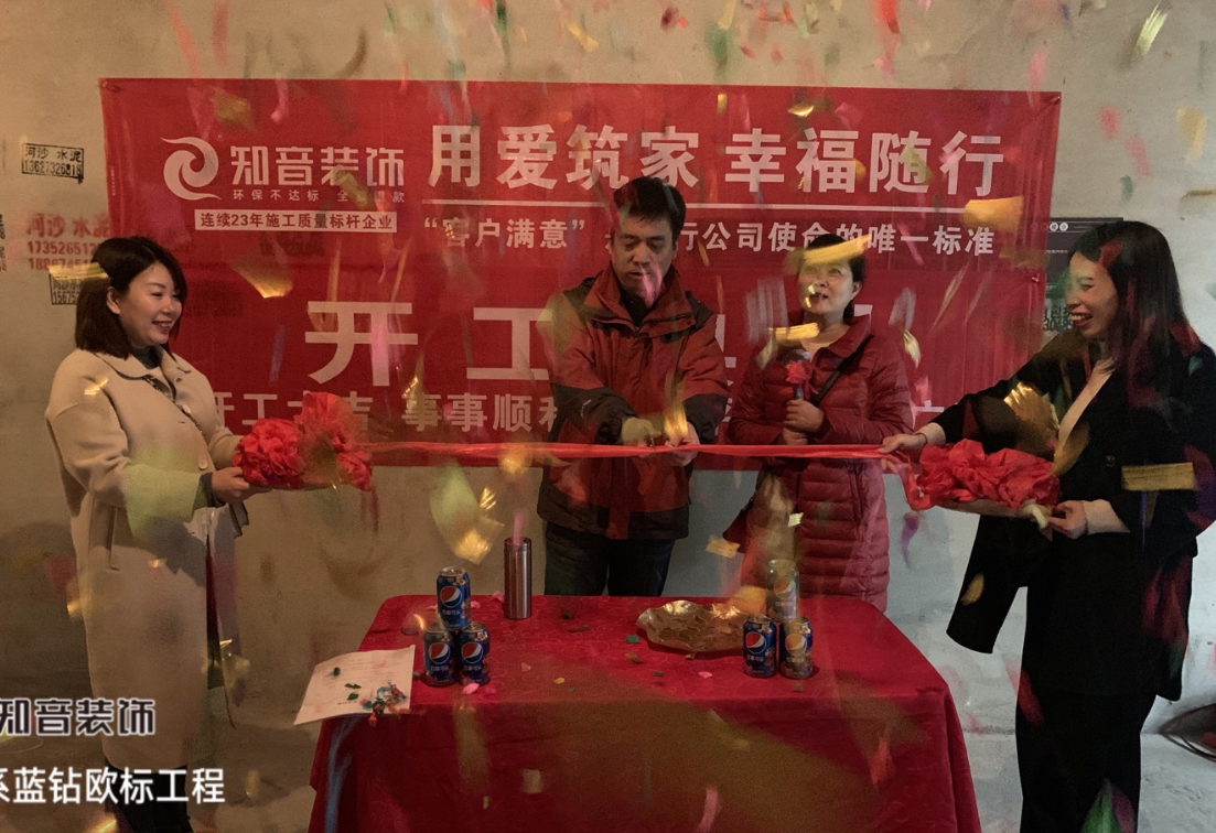 開(kāi)工典禮:經(jīng)過(guò)原屋驗(yàn)收,電梯公共過(guò)道保護(hù),鏟除墻皮,黃墻綠地保護(hù),全房放線定位,全房放樣安全防護(hù)、安全文明標(biāo)牌懸掛、窗貼、門(mén)貼、燃?xì)獗黼姳硐浔Wo(hù)、消防器材布置,以上各項(xiàng)工作完畢,舉行儀式,標(biāo)志正式進(jìn)入施工階段。同時(shí)以表祝賀,也表示感謝各位業(yè)主選擇我們知音,知音將會(huì)用愛(ài)筑起每一個(gè)家!