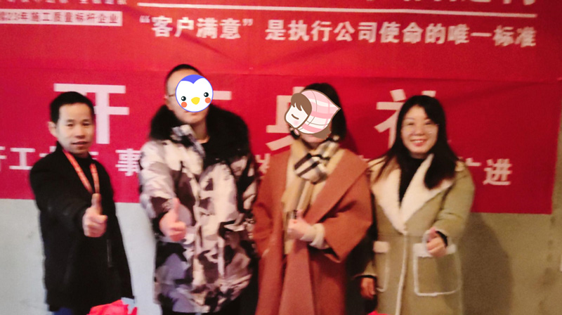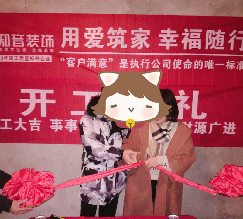 開工典禮:經過原屋驗收,電梯公共過道保護,鏟除墻皮,黃墻綠地保護,全房放線定位,全房放樣安全防護、安全文明標牌懸掛、窗貼、門貼、燃氣表電表箱保護、消防器材布置,以上各項工作完畢,舉行儀式,標志正式進入施工階段。