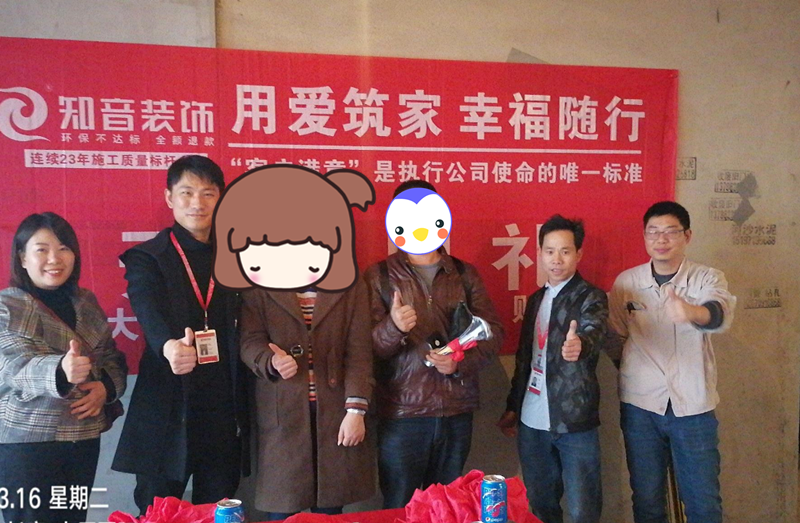 開工典禮:經過原屋驗收,電梯公共過道保護,鏟除墻皮,黃墻綠地保護,全房放線定位,全房放樣安全防護、安全文明標牌懸掛、窗貼、門貼、燃氣表電表箱保護、消防器材布置,以上各項工作完畢,舉行儀式,標志正式進入施工階段。 同時以表祝賀,也表示感謝各位業(yè)主選擇我們知音,知音將會用愛筑起每一個家!