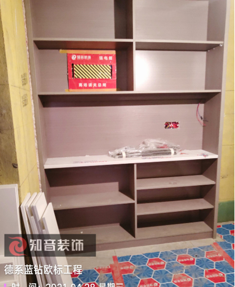 2、柜內鋪貼飾面板時,先進行清潔、打磨后以白乳膠粘貼,再用少許蚊釘固定。接縫應均勻、整齊,柜類所有木作的固定,連接必須使用白乳膠再釘釘子固定。