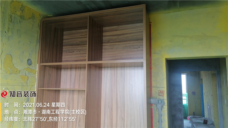 2、柜內(nèi)鋪貼飾面板時,先進行清潔、打磨后以白乳膠粘貼,再用少許蚊釘固定。接縫應(yīng)均勻、整齊,柜類所有木作的固定,連接必須使用白乳膠再釘釘子固定。