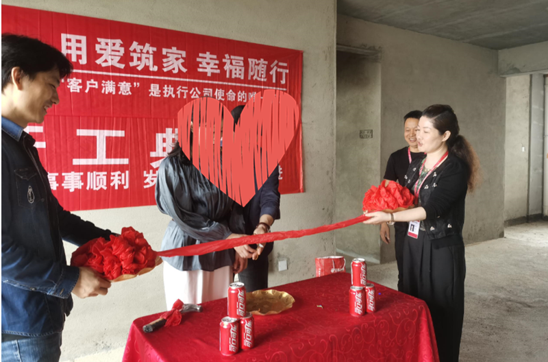 經(jīng)過原屋儉收,電梯公共過道保護,鏟除墻皮,黃墻綠地保護,全房放線定位,全房放樣安全后知音裝飾為每戶業(yè)主舉行隆重的開工儀式,。以表慶賀~前期施工#
