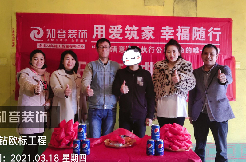 開(kāi)工典禮:經(jīng)過(guò)原屋驗(yàn)收,電梯公共過(guò)道保護(hù),鏟除墻皮,黃墻綠地保護(hù),全房放線(xiàn)定位,全房放樣安全防護(hù)、安全文明標(biāo)牌懸掛、窗貼、門(mén)貼、燃?xì)獗黼姳硐浔Wo(hù)、消防器材布置,以上各項(xiàng)工作完畢,舉行儀式,標(biāo)志正式進(jìn)入施工階段。 同時(shí)以表祝賀,也表示感謝各位業(yè)主選擇我們知音,知音將會(huì)用愛(ài)筑起每一個(gè)家!