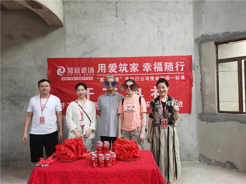 經過原屋儉收,電梯公共過道保護,鏟除墻皮,黃墻綠地保護,全房放線定位,全房放樣安全后知音裝飾為每戶業(yè)主舉行隆重的開工儀式以表慶賀