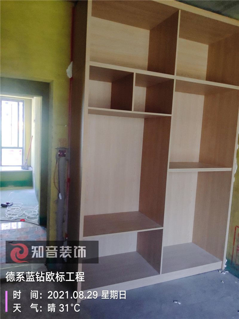 2、柜內(nèi)鋪貼飾面板時,先進行清潔、打磨后以白乳膠粘貼,再用少許蚊釘固定。接縫應(yīng)均勻、整齊,柜類所有木作的固定,連接必須使用白乳膠再釘釘子固定。