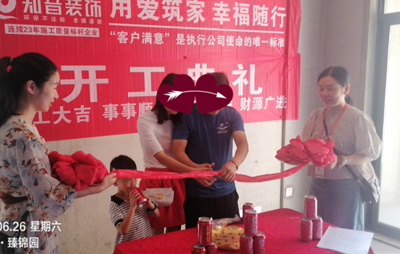 經(jīng)過原屋儉收,電梯公共過道保護,鏟除墻皮,黃墻綠地保護,全房放線定位,全房放樣安全后知音裝飾為每戶業(yè)主舉行隆重的開工儀式以表慶賀