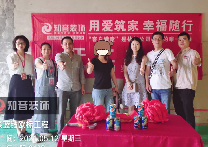 經(jīng)過原屋儉收,電梯公共過道保護(hù),鏟除墻皮,黃墻綠地保護(hù),全房放線定位,全房放樣安全后知音裝飾為大加舉行了隆重的開工儀式已表慶賀~