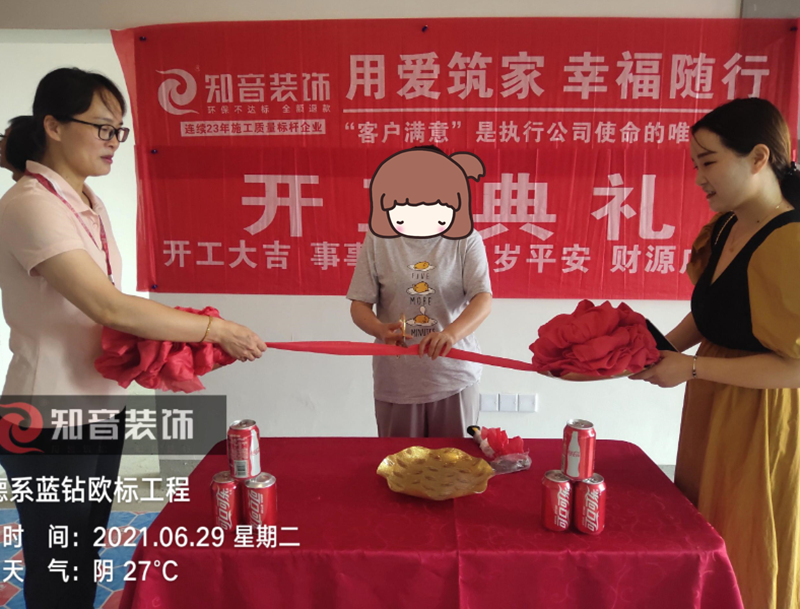 經(jīng)過原屋儉收,電梯公共過道保護,鏟除墻皮,黃墻綠地保護,全房放線定位,全房放樣安全后知音裝飾為每戶業(yè)主舉行隆重的開工儀式以表慶賀