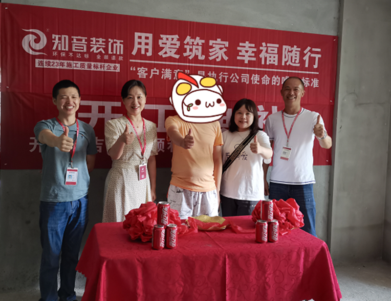 經(jīng)過(guò)原屋儉收,電梯公共過(guò)道保護(hù),鏟除墻皮,黃墻綠地保護(hù),全房放線定位,全房放樣安全后知音裝飾為每戶業(yè)主舉行隆重的開工儀式以表慶賀~
