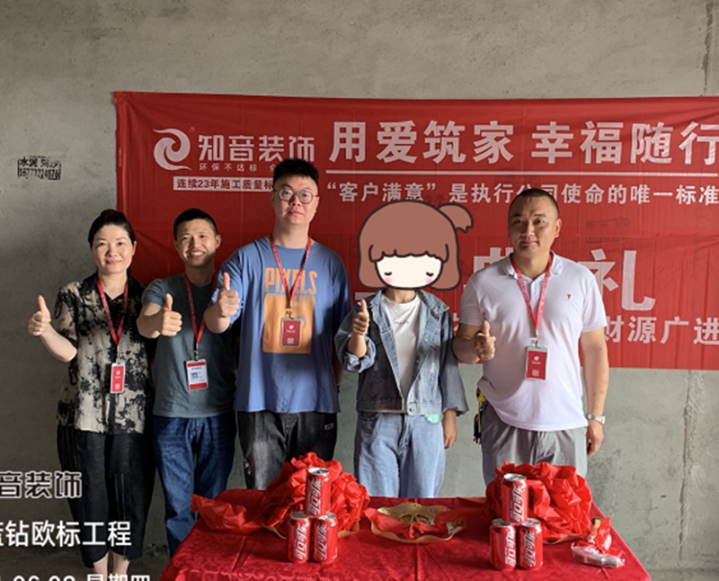 經(jīng)過原屋儉收,電梯公共過道保護(hù),鏟除墻皮,黃墻綠地保護(hù),全房放線定位,全房放樣安全后知音裝飾為每戶業(yè)主舉行隆重的開工儀式以表慶賀