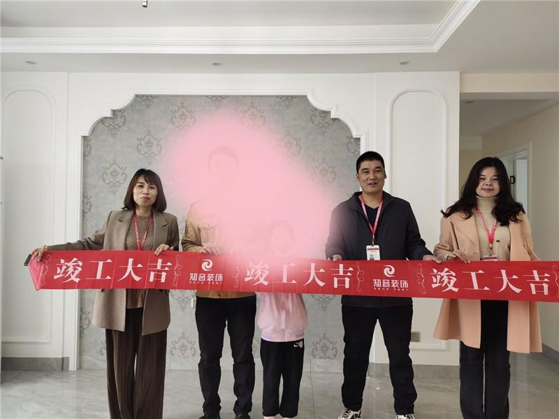 經過原屋儉收,電梯公共過道保護,鏟除墻皮,黃墻綠地保護,全房放線定位,全房放樣安全,后知音裝飾為每戶開工的業(yè)主舉行隆重的開工儀式,以表祝賀。