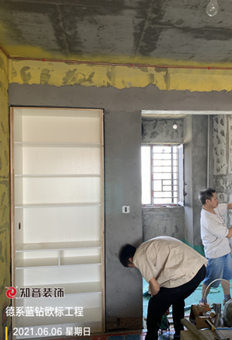 經過原屋儉收,電梯公共過道保護,鏟除墻皮,黃墻綠地保護,全房放線定位,全房放樣安全,后知音裝飾為每戶開工的業(yè)主舉行隆重的開工儀式,以表祝賀。前期施工#