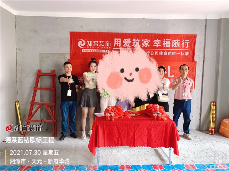 經(jīng)過(guò)原屋儉收,電梯公共過(guò)道保護(hù),鏟除墻皮,黃墻綠地保護(hù),全房放線定位,全房放樣安全后知音裝飾為每戶業(yè)主舉行隆重的開(kāi)工儀式以表慶賀前期施工#