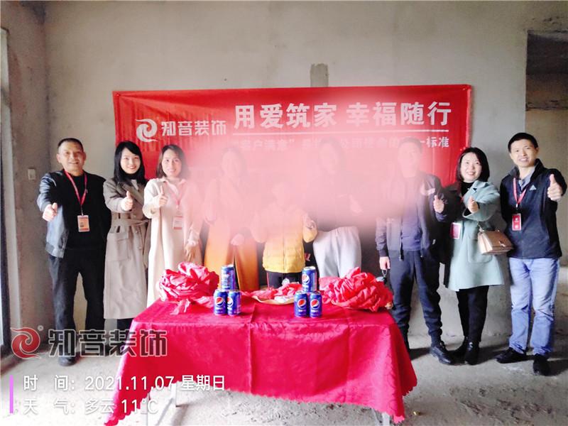 經(jīng)過原屋儉收,電梯公共過道保護(hù),鏟除墻皮,黃墻綠地保護(hù),全房放線定位,全房放樣安全后知音裝飾為每戶業(yè)主舉行隆重的開工儀式以表慶賀