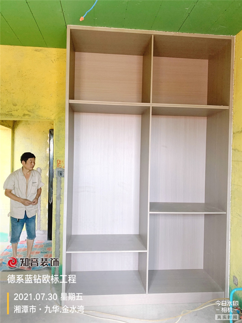 2、柜內(nèi)鋪貼飾面板時(shí),先進(jìn)行清潔、打磨后以白乳膠粘貼,再用少許蚊釘固定。接縫應(yīng)均勻、整齊,柜類所有木作的固定,連接必須使用白乳膠再釘釘子固定。