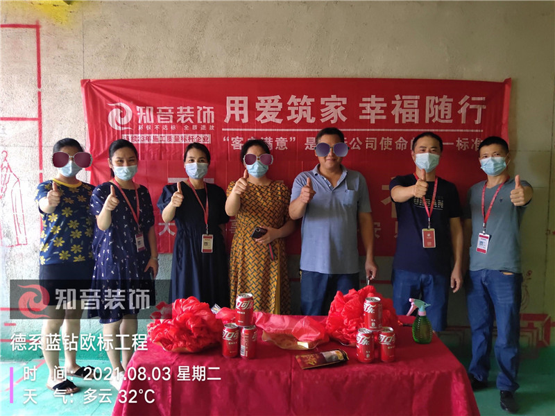 經(jīng)過原屋儉收,電梯公共過道保護(hù),鏟除墻皮,黃墻綠地保護(hù),全房放線定位,全房放樣安全后知音裝飾為每戶業(yè)主舉行隆重的開工儀式以表慶賀 前期施工#