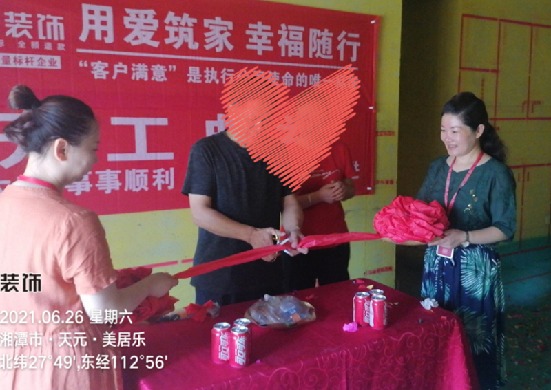 經(jīng)過原屋儉收,電梯公共過道保護(hù),鏟除墻皮,黃墻綠地保護(hù),全房放線定位,全房放樣安全后知音裝飾為每戶業(yè)主舉行隆重的開工儀式以表慶賀!