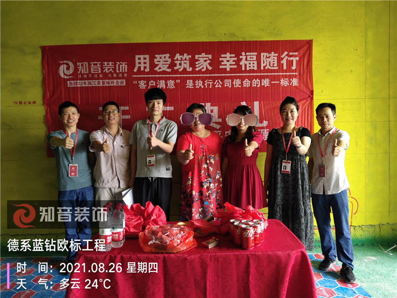 經(jīng)過原屋儉收,電梯公共過道保護(hù),鏟除墻皮,黃墻綠地保護(hù),全房放線定位,全房放樣安全后知音裝飾為每戶業(yè)主舉行隆重的開工儀式以表慶賀 前期施工#