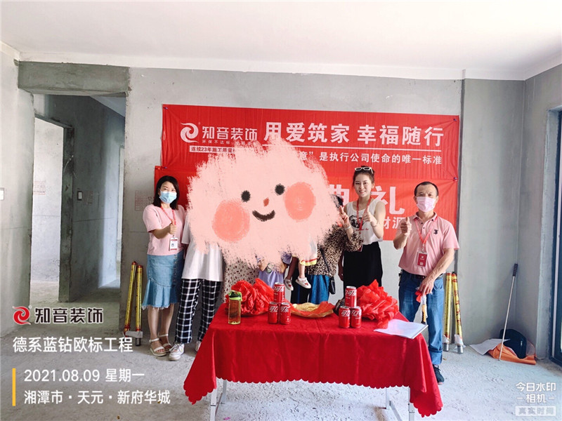 經(jīng)過原屋儉收,電梯公共過道保護,鏟除墻皮,黃墻綠地保護,全房放線定位,全房放樣安全后知音裝飾為每戶業(yè)主舉行隆重的開工儀式以表慶賀前期施工#
