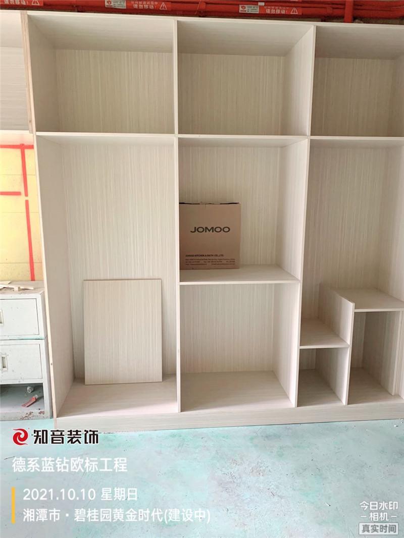2、柜內(nèi)鋪貼飾面板時,先進行清潔、打磨后以白乳膠粘貼,再用少許蚊釘固定。接縫應均勻、整齊,柜類所有木作的固定,連接必須使用白乳膠再釘釘子固定。