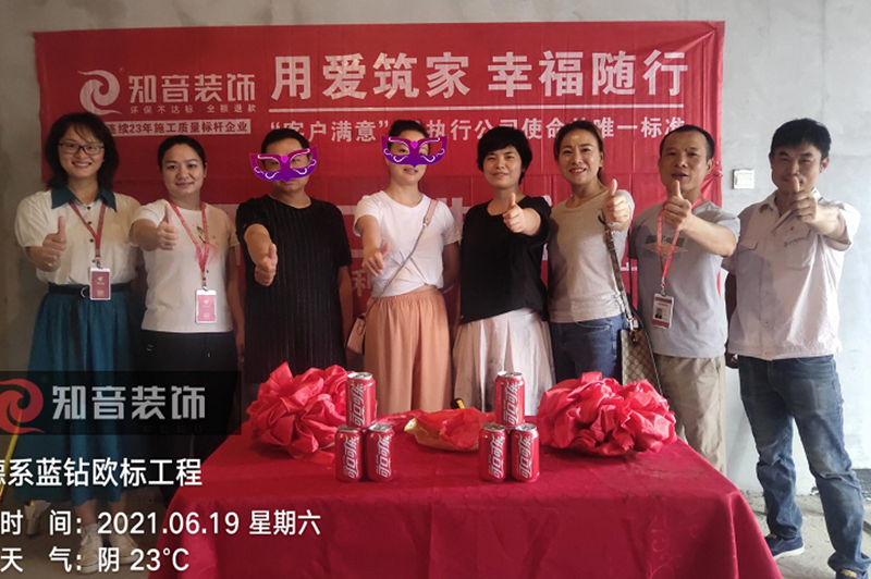經(jīng)過原屋儉收,電梯公共過道保護,鏟除墻皮,黃墻綠地保護,全房放線定位,全房放樣安全后知音裝飾為每戶業(yè)主舉行隆重的開工儀式以表慶賀