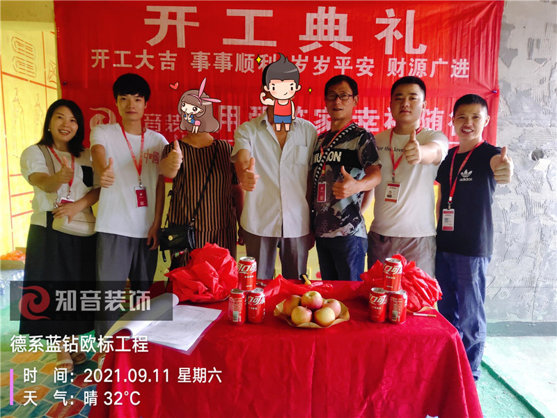 經(jīng)過原屋儉收,電梯公共過道保護,鏟除墻皮,黃墻綠地保護,全房放線定位,全房放樣安全后知音裝飾為每戶業(yè)主舉行隆重的開工儀式以表慶賀前期施工#