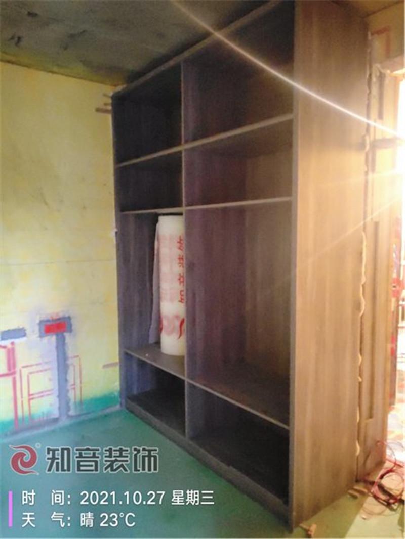 2、柜內(nèi)鋪貼飾面板時,先進行清潔、打磨后以白乳膠粘貼,再用少許蚊釘固定。接縫應均勻、整齊,柜類所有木作的固定,連接必須使用白乳膠再釘釘子固定。