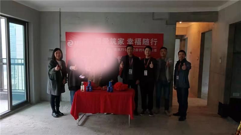 經(jīng)過原屋儉收,電梯公共過道保護(hù),鏟除墻皮,黃墻綠地保護(hù),全房放線定位,全房放樣安全后知音裝飾為每戶業(yè)主舉行隆重的開工儀式以表慶賀前期施工#