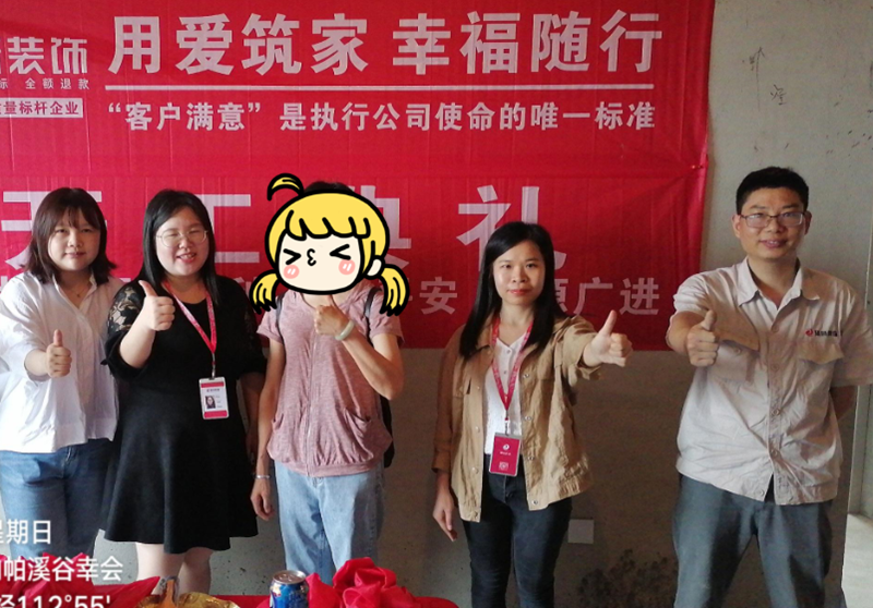 經(jīng)過原屋儉收,電梯公共過道保護,鏟除墻皮,黃墻綠地保護,全房放線定位,全房放樣安全后知音裝飾為業(yè)主舉行隆重的開工儀式以表慶賀
