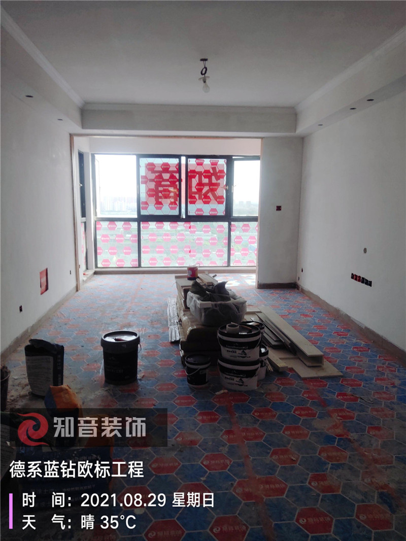 經(jīng)過原屋儉收,電梯公共過道保護(hù),鏟除墻皮,黃墻綠地保護(hù),全房放線定位,全房放樣安全后知音裝飾為每戶業(yè)主舉行隆重的開工儀式以表慶賀。前期施工#