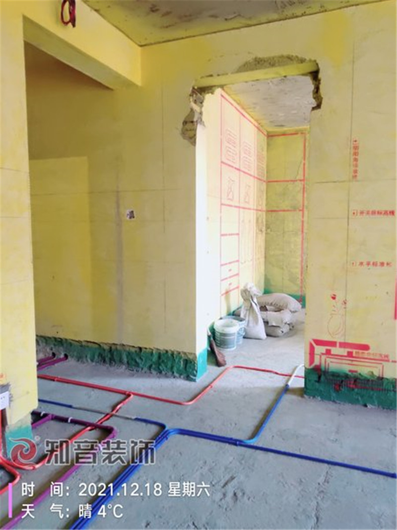 經(jīng)過(guò)原屋儉收,電梯公共過(guò)道保護(hù),鏟除墻皮,黃墻綠地保護(hù),全房放線定位,全房放樣安全后知音裝飾為每戶業(yè)主舉行隆重的開工儀式以表慶賀
