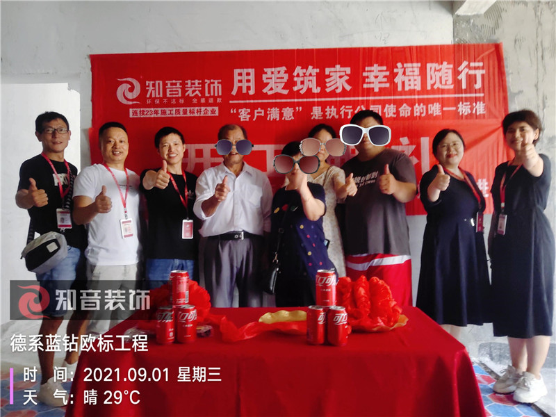 經(jīng)過原屋儉收,電梯公共過道保護(hù),鏟除墻皮,黃墻綠地保護(hù),全房放線定位,全房放樣安全后知音裝飾為每戶業(yè)主舉行隆重的開工儀式以表慶賀 前期施工#
