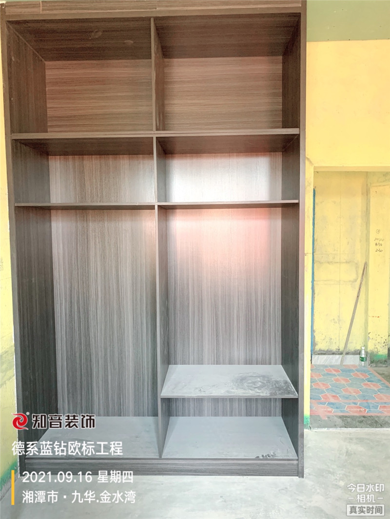 2、柜內(nèi)鋪貼飾面板時(shí),先進(jìn)行清潔、打磨后以白乳膠粘貼,再用少許蚊釘固定。接縫應(yīng)均勻、整齊,柜類所有木作的固定,連接必須使用白乳膠再釘釘子固定。