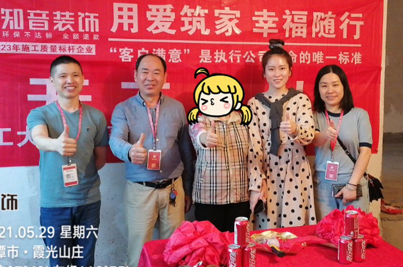 經(jīng)過(guò)原屋儉收,電梯公共過(guò)道保護(hù),鏟除墻皮,黃墻綠地保護(hù),全房放線定位,全房放樣安全后知音裝飾為每戶業(yè)主舉行隆重的開(kāi)工儀式以表慶賀