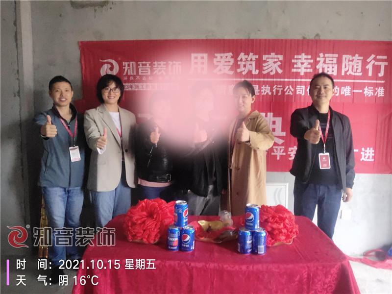 經(jīng)過原屋儉收,電梯公共過道保護(hù),鏟除墻皮,黃墻綠地保護(hù),全房放線定位,全房放樣安全后知音裝飾為每戶業(yè)主舉行隆重的開工儀式以表慶賀前期施工#