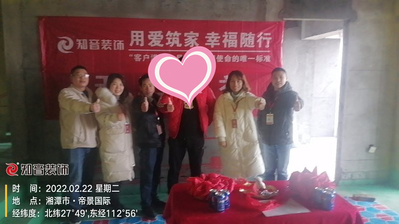 經(jīng)過原屋儉收,電梯公共過道保護(hù),鏟除墻皮,黃墻綠地保護(hù),全房放線定位,全房放樣安全后知音裝飾為每戶業(yè)主舉行隆重的開工儀式以表慶賀