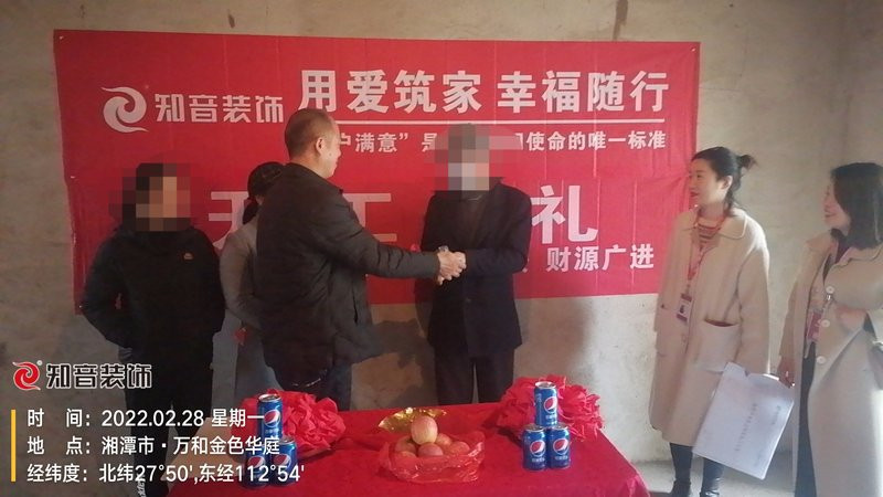 經(jīng)過原屋儉收,電梯公共過道保護,鏟除墻皮,黃墻綠地保護,全房放線定位,全房放樣安全后知音裝飾為每戶業(yè)主舉行隆重的開工儀式以表慶賀
