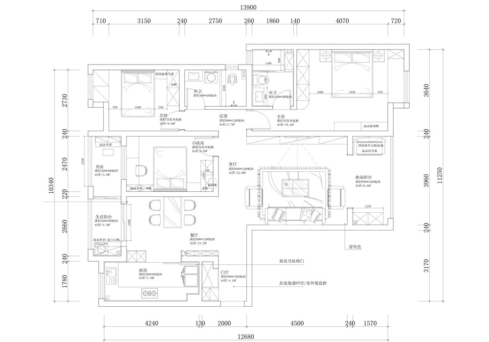 | 裝修戶型 | 三居室 | 裝修面積 | 100-140㎡ |