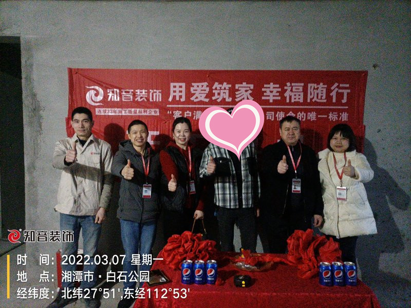 經(jīng)過原屋儉收,電梯公共過道保護(hù),鏟除墻皮,黃墻綠地保護(hù),全房放線定位,全房放樣安全后知音裝飾為每戶業(yè)主舉行隆重的開工儀式以表慶賀