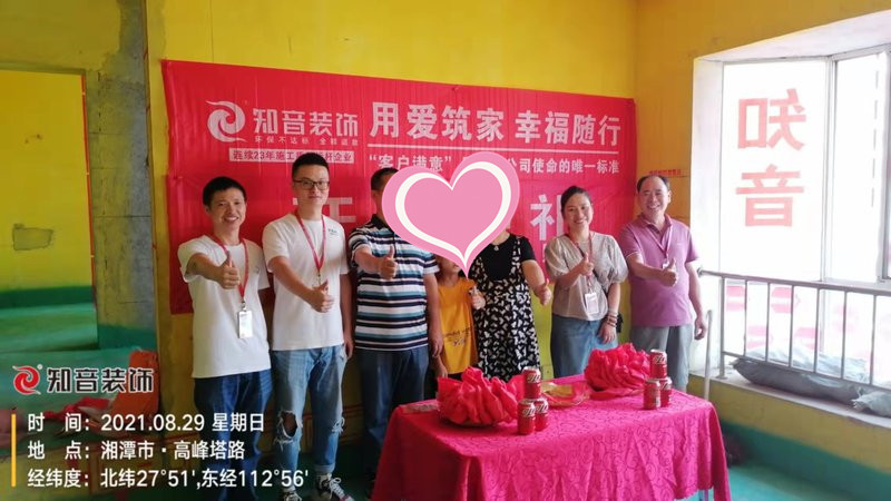 經(jīng)過原屋儉收,電梯公共過道保護,鏟除墻皮,黃墻綠地保護,全房放線定位,全房放樣安全后知音裝飾為每戶業(yè)主舉行隆重的開工儀式以表慶賀