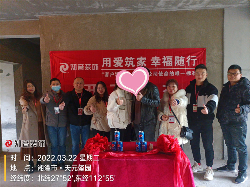 經(jīng)過原屋儉收,電梯公共過道保護(hù),鏟除墻皮,黃墻綠地保護(hù),全房放線定位,全房放樣安全后知音裝飾為每戶業(yè)主舉行隆重的開工儀式以表慶賀