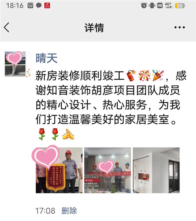 經(jīng)過原屋儉收,電梯公共過道保護,鏟除墻皮,黃墻綠地保護,全房放線定位,全房放樣安全后知音裝飾為每戶業(yè)主舉行隆重的開工儀式以表慶賀