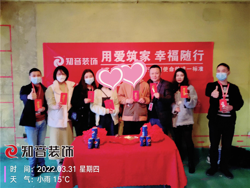 經(jīng)過原屋儉收,電梯公共過道保護(hù),鏟除墻皮,黃墻綠地保護(hù),全房放線定位,全房放樣安全后知音裝飾為每戶業(yè)主舉行隆重的開工儀式以表慶賀