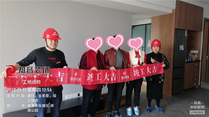 經(jīng)過(guò)原屋儉收,電梯公共過(guò)道保護(hù),鏟除墻皮,黃墻綠地保護(hù),全房放線定位,全房放樣安全后知音裝飾為每戶業(yè)主舉行隆重的開(kāi)工儀式以表慶賀