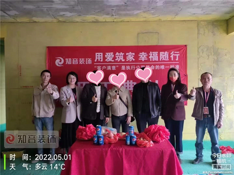經(jīng)過原屋儉收,電梯公共過道保護,鏟除墻皮,黃墻綠地保護,全房放線定位,全房放樣安全后知音裝飾為每戶業(yè)主舉行隆重的開工儀式以表慶賀